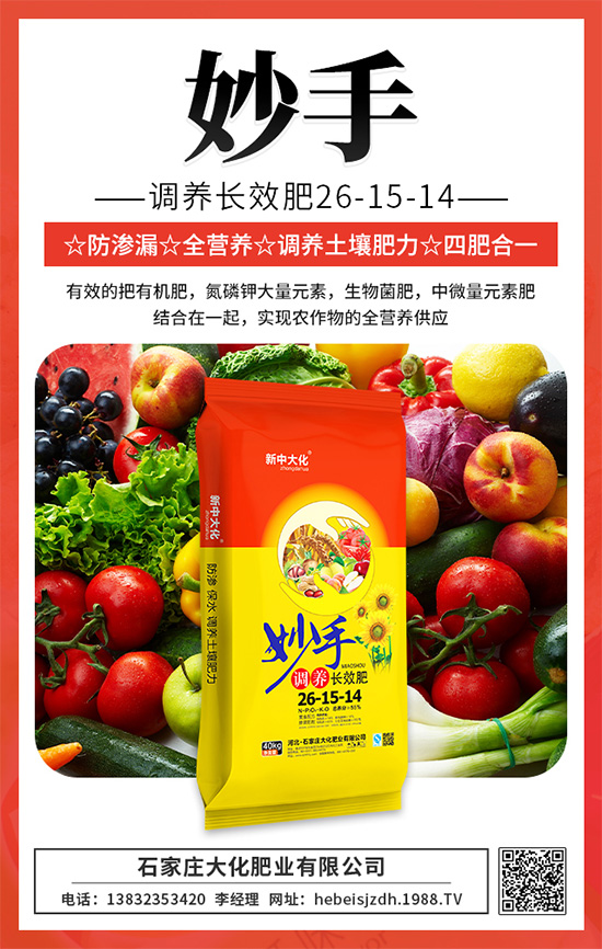 妙手調(diào)養(yǎng)長(zhǎng)效肥,多種作物都能用,比同樣含量摻混肥控釋肥價(jià)格低,有賣點(diǎn),利潤(rùn)高,農(nóng)民說好,經(jīng)銷商賺錢多的好產(chǎn)品,值得你關(guān)注。