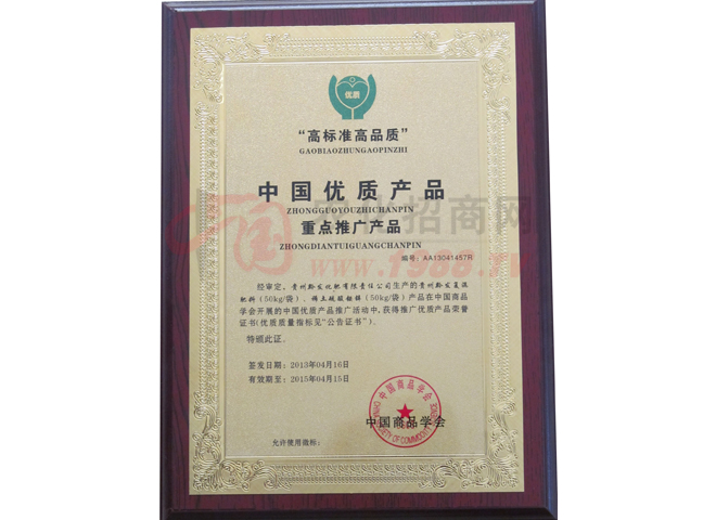 近年來,公司又先后聯(lián)系國內(nèi)有關(guān)技術(shù)院校及省、市多家研究機構(gòu)以稀土為課題,共同開發(fā)和研制出新一代多種含量的稀土專利產(chǎn)品,并在全國各地進行了大量的試驗和示范,效果顯著、用戶認(rèn)可。在大量的對比示范中,稀土肥料不但能大幅度降低農(nóng)民朋友的投資成本;而且還能大大提高農(nóng)產(chǎn)品的品質(zhì),深受廣大農(nóng)民朋友青瞇和認(rèn)可。黔發(fā)系列稀土專利產(chǎn)品連續(xù)多年來,一直被貴州省列為綠色高效農(nóng)業(yè)示范工程、國家星火項目產(chǎn)品。并先后獲得了“名優(yōu)產(chǎn)品”“品牌”“貴州省消費者信得過產(chǎn)品”“3、15全國質(zhì)量放心消費聯(lián)盟品牌”“第十九屆楊凌后稷金像獎特別獎”等殊榮。